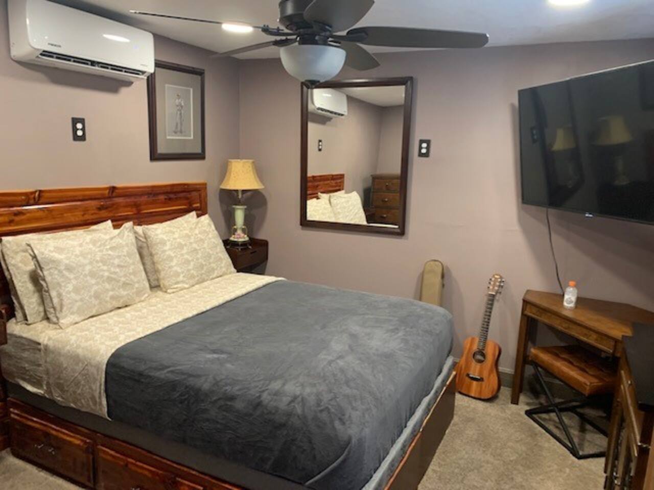 The perfect private tiny home we like to call Baby Blue Tonight boasts a full eat-in kitchen, bedroom and bathroom. Two oversized TVs with high-speed internet. There are two heating and cooling units to keep you cool in the summer and warm in the winter. There is a desk if you need to do a little work while having fun in our many beautiful parks! Centrally located in Hurricane which is about 30 minutes to Zion, St. George, and Cedar City. Easy access, safe and clean parking area.